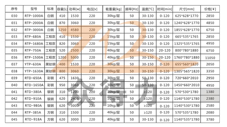 高溫消毒柜系列產品技術參數及統一報價。
