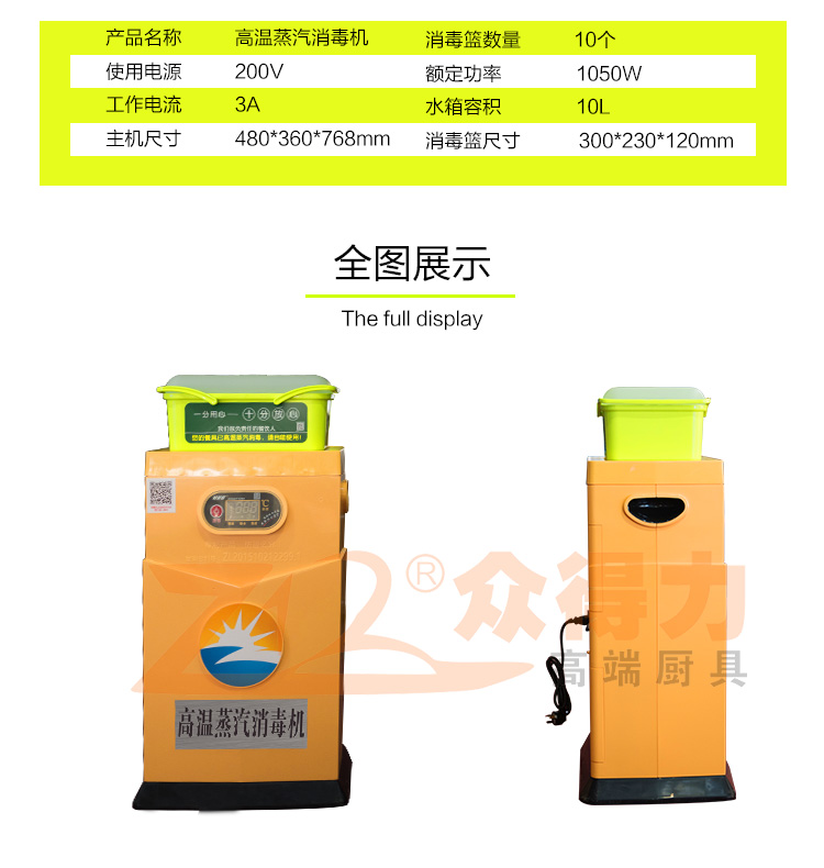 眾得力廚具為您提供主題餐廳流行消毒設(shè)備,小黃人蒸汽快速消毒機(jī),菜籃子式消毒機(jī),消毒完畢提提就給客戶了,多種組合,消毒看的到。衛(wèi)生高效!你家餐廳有配嗎?抓緊時(shí)間電話聯(lián)系18879770143 0797-8284441訂購(gòu)!