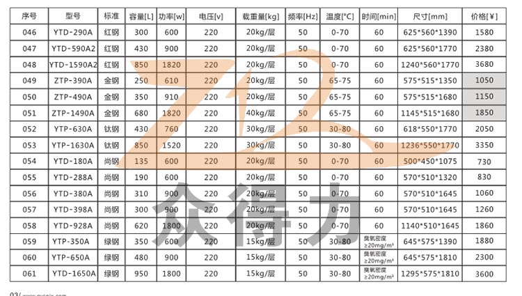 低溫消毒柜系列產品技術參數及統一報價